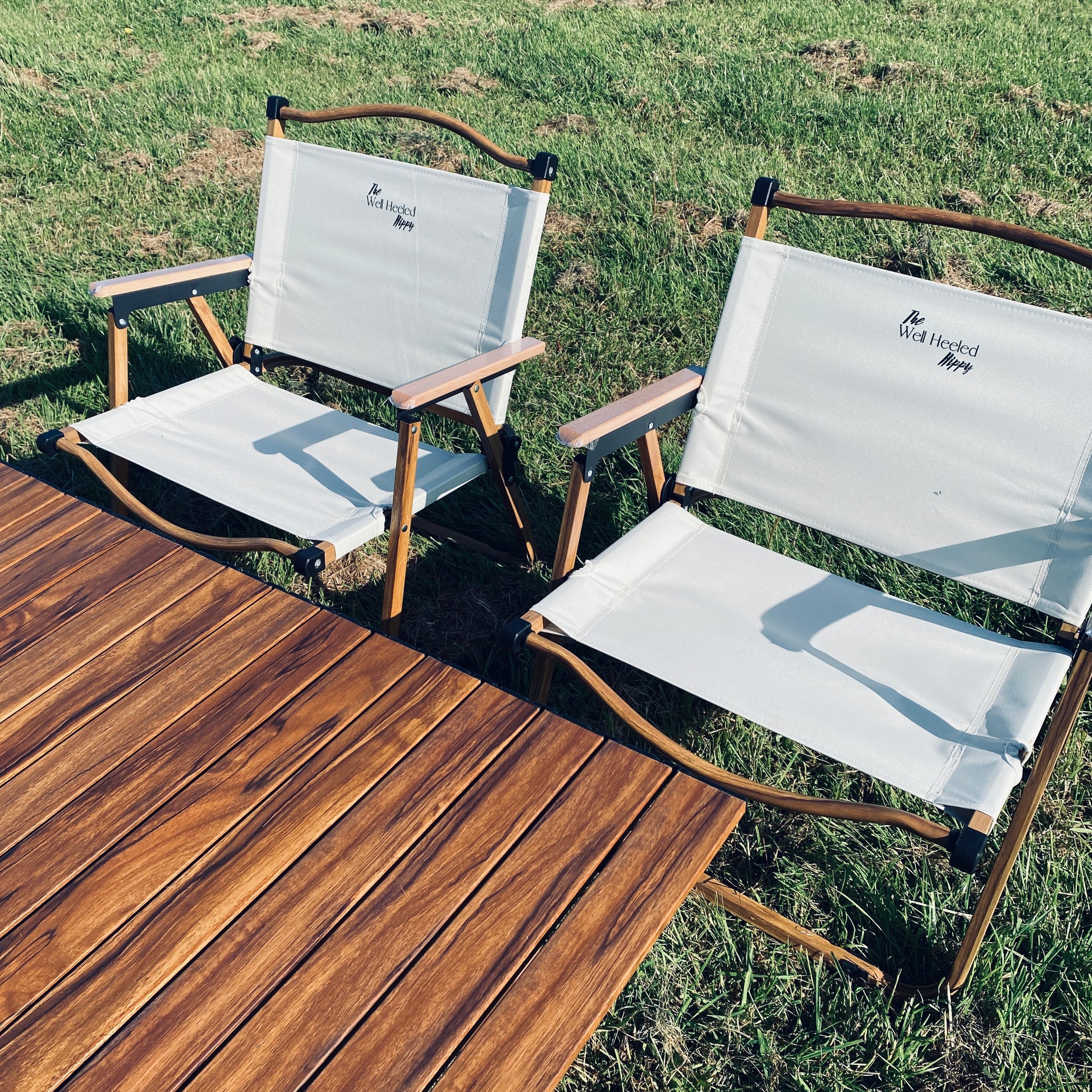 The chairs are beautifully made with water repellent oxford cloth canvas and Beech wood arm rests, the wooden-effect aluminium tubing of the frame means they are extra light weight but extremely durable.